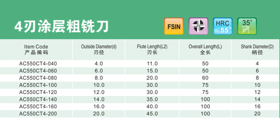 4刃涂層粗銑刀